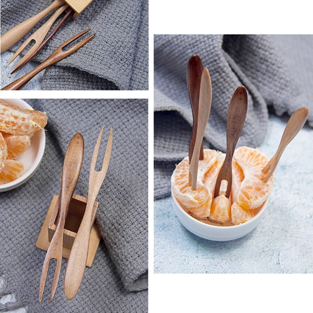 Mini Wooden Barrel Fruit Fork for Kids Eco-friendly Small Dessert Fork Cake Sign Leave and sale