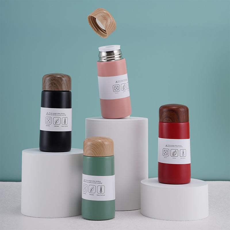 Mini Wooden Lid Stainless Steel Tumbler 304 Insulated Pocket Mug Business Gift Small Capacity Straight Cup