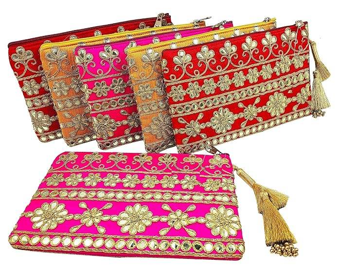 Mini Zari Embroidery Coin Pouches Indian Wedding Return Gift Small Potli Purse for Mehndi Haldi Sangeet or Any Festival