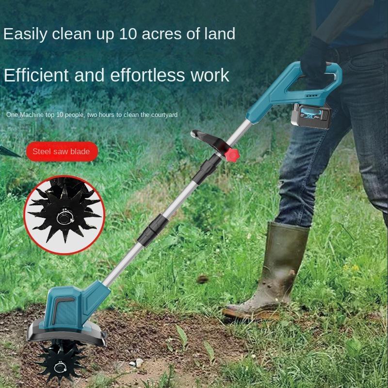Mini garden tiller cultivator cordless household tools adjustable handle industrial-grade battery power supply