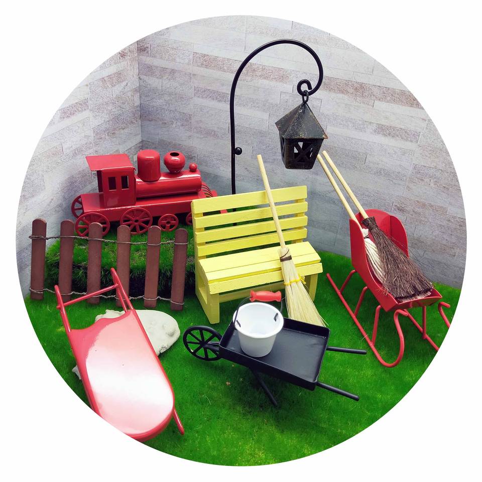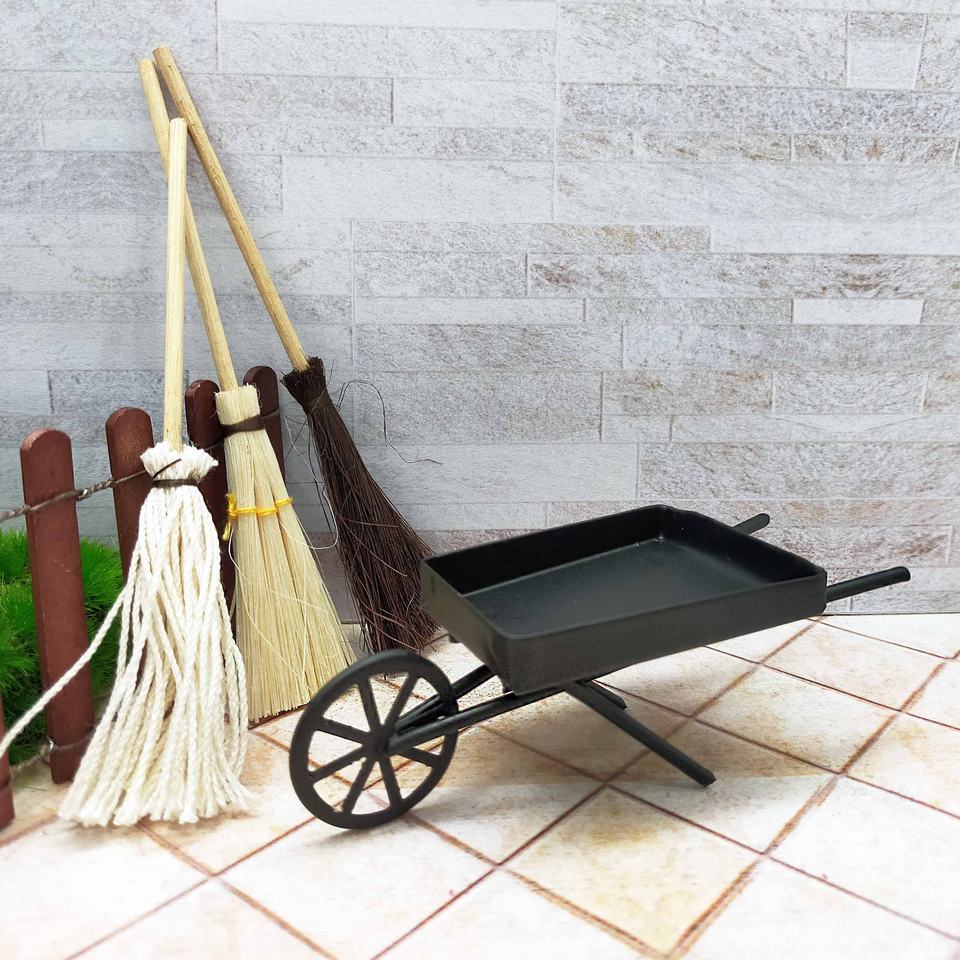 Product name:Miniature 1:12 Metal Train Sled Wheelbarrow Brooms and Fence