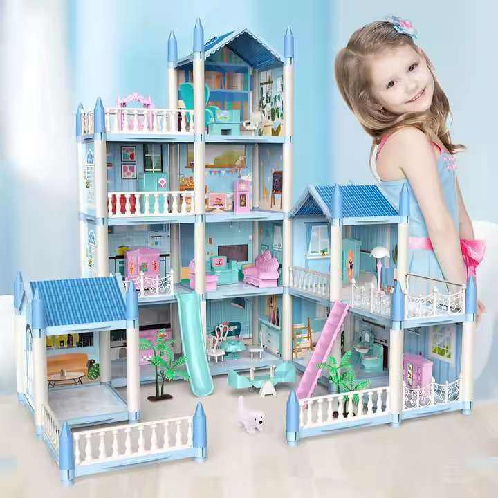 Miniature DIY Plastic Princess House Play set with Furniture Accessories Pretend Play for Girls and Their Dolls
