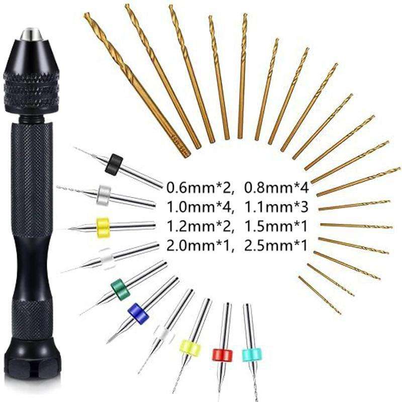 Miniature Drill Bit Kit 0.6-2.5mm Gold Twist Bits Spring Collet Chuck PCB Drilling Hand Drill Set