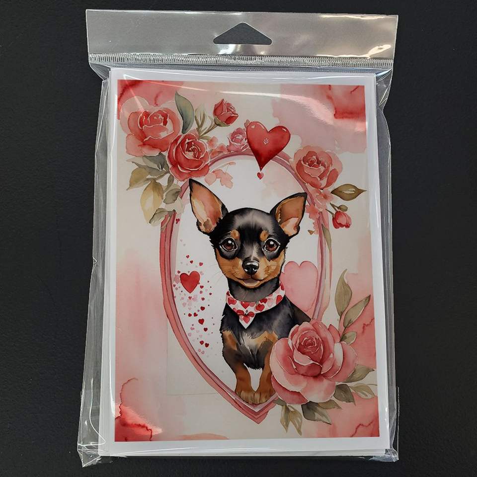 Miniature Pinscher Valentine Roses Whimsical A7 Size 5x7 Blank Note Cards Pack 8 with Envelopes Greeting Cards