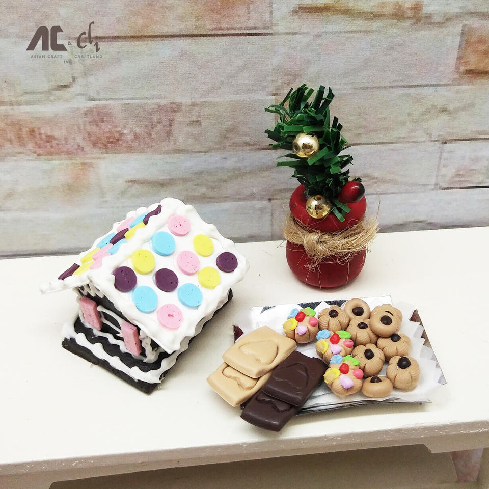 Miniature Warm Christmas Celebration Roast Turkey and Gingerbread House Mini Toy Table with Cake for Doll House Decor
