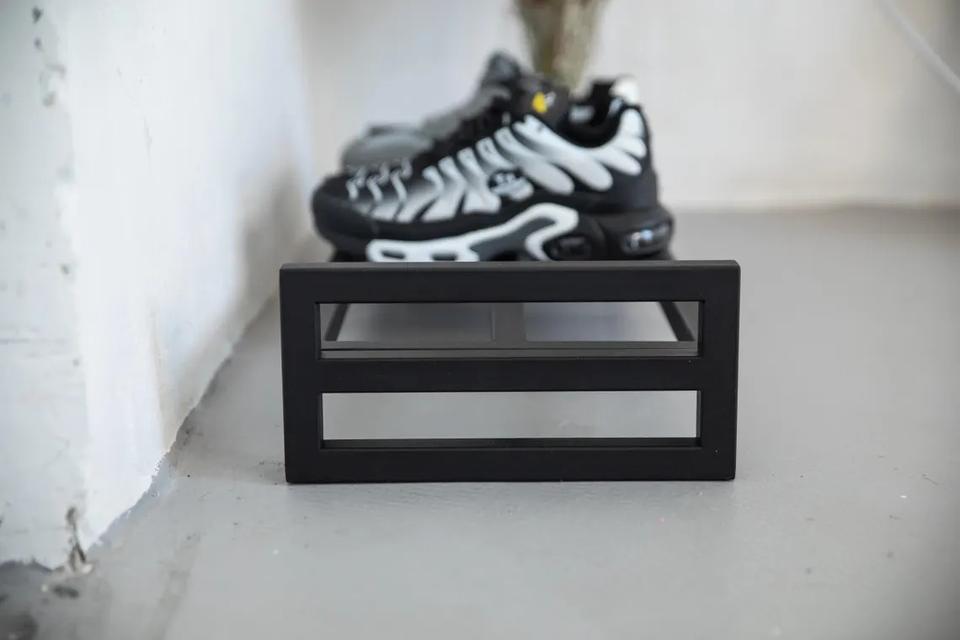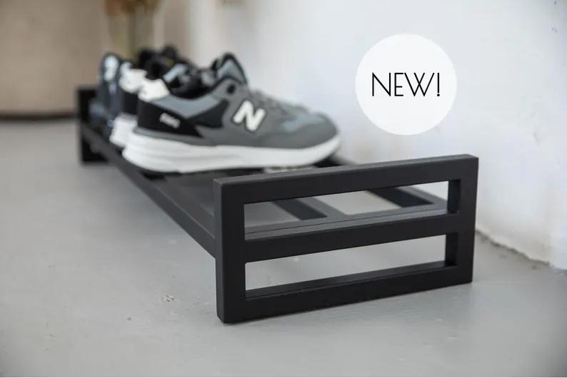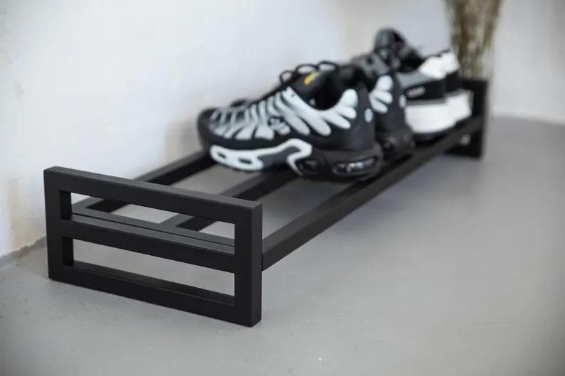 Minimal Black Shoe Rack Single Tier Space Saving Organizer Sturdy Stable Frame Compact Design Modern Entryway Storage Solution