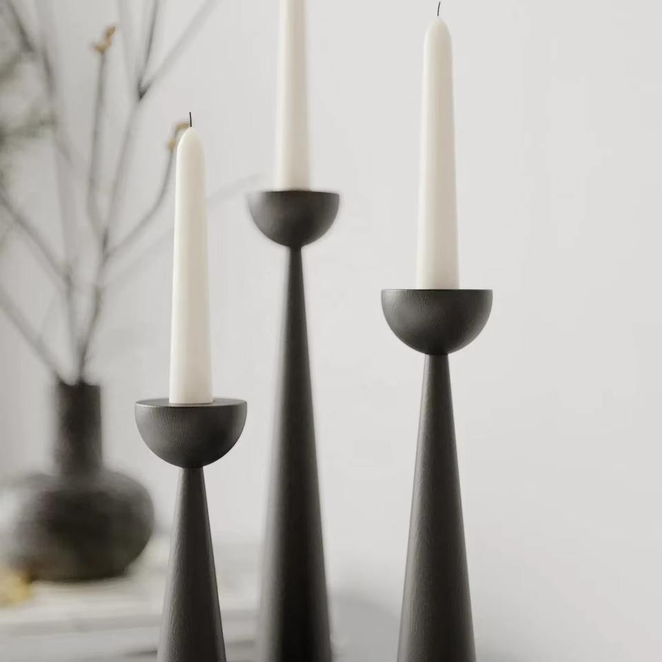 Minimal Black Wooden Candle Holder For Home Decor Shelf Styling Dining Table Setup And Restaurants Decor Handcrafted From India