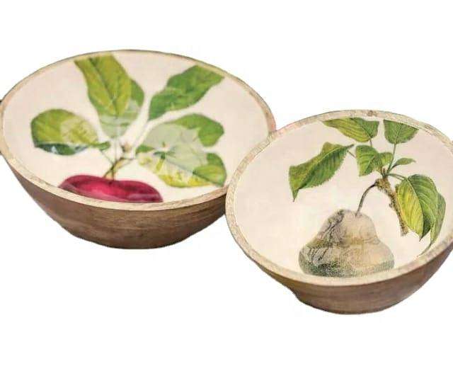 Minimal Design Wooden Enamel Printed Serving Bowl For Salad Fruits & Soup Dinnerware High Quality Serving Bowl For Kitchenware