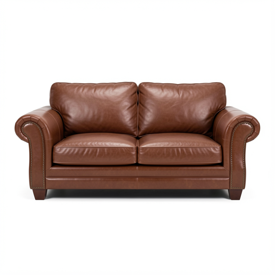 High End Classic Leather Loveseat Sofa Nailhead Rolled Arms Eco-Friendly Sofa Bed for Luxury Living Room Workshop School Use