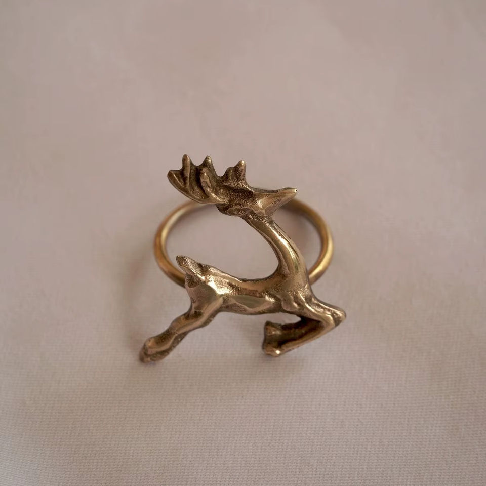 Minimal Elegant Metal Reindeer Napkin Ring Crafted For Clean Sophisticated Seasonal Dining Table Appearance