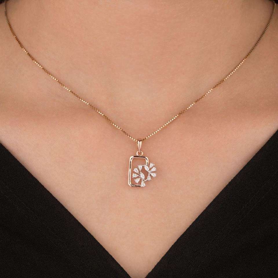 Minimal Gold Geometric Pendant Diamond Necklace for Women – Elegant Designer Dainty Necklace – Everyday Wear Diamond Jewelry