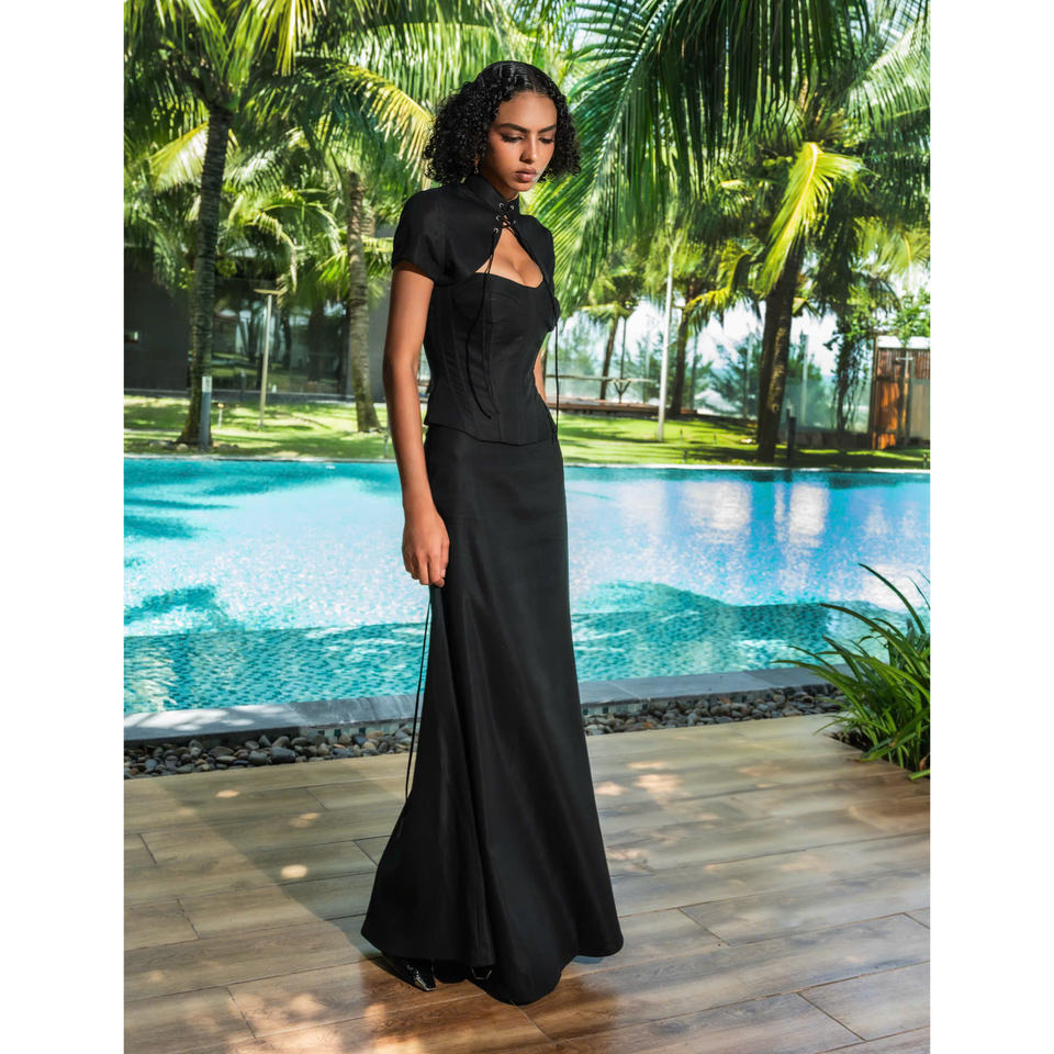 Minimal Long Black Skirt Vietnam Women's Clothing With Dart Shaping & Invisible Side Zipper Chic Woven A-Line Women's Skirts