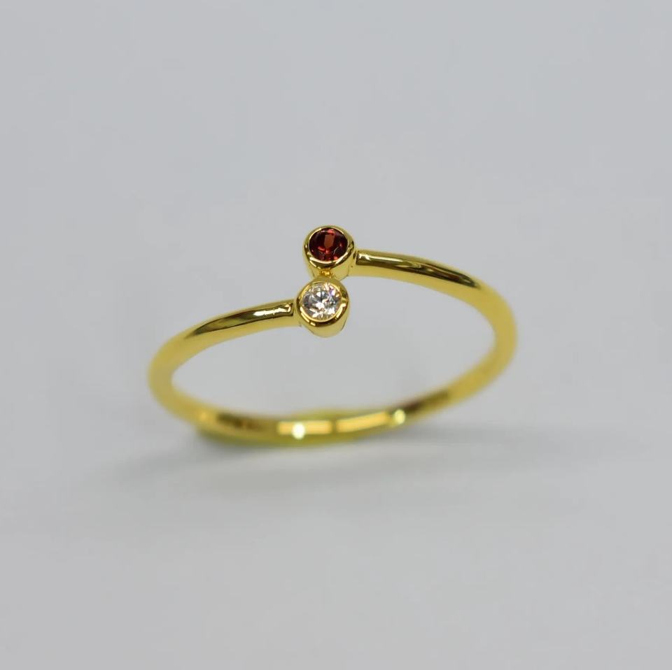 Minimal Natural Garnet Cubic Zirconia Ring 925 Sterling Silver 14K Gold Plating Customizable for Engagement Gift Party Ready