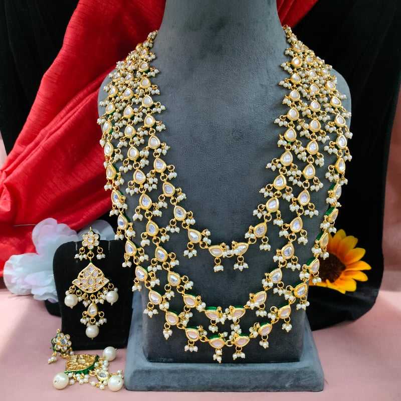 Minimal Pearls Work & Kundan Long Necklace Set Lustrous Pearls Versatile Piece For Both Everyday Wear & Special Occasions