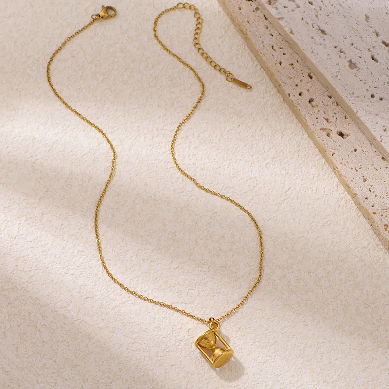 Minimalist 18K Gold Plated 304 Stainless Steel Necklace Hourglass Shape Pendant Vacuum Electroplating Simple Style Cable Chain