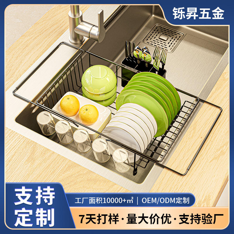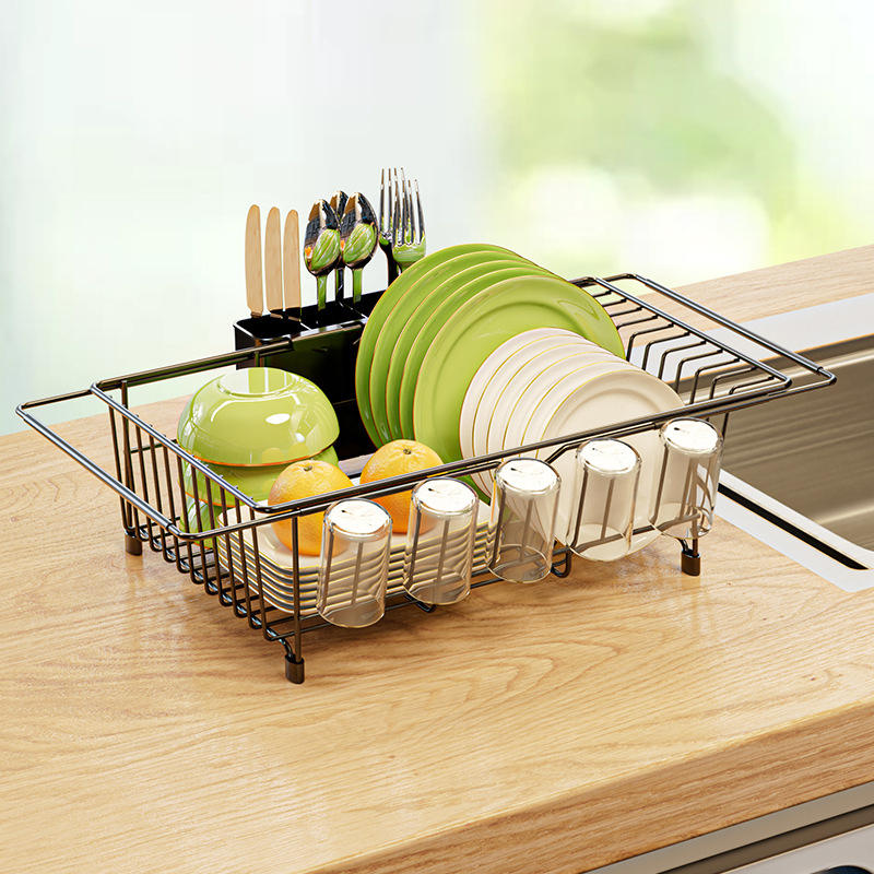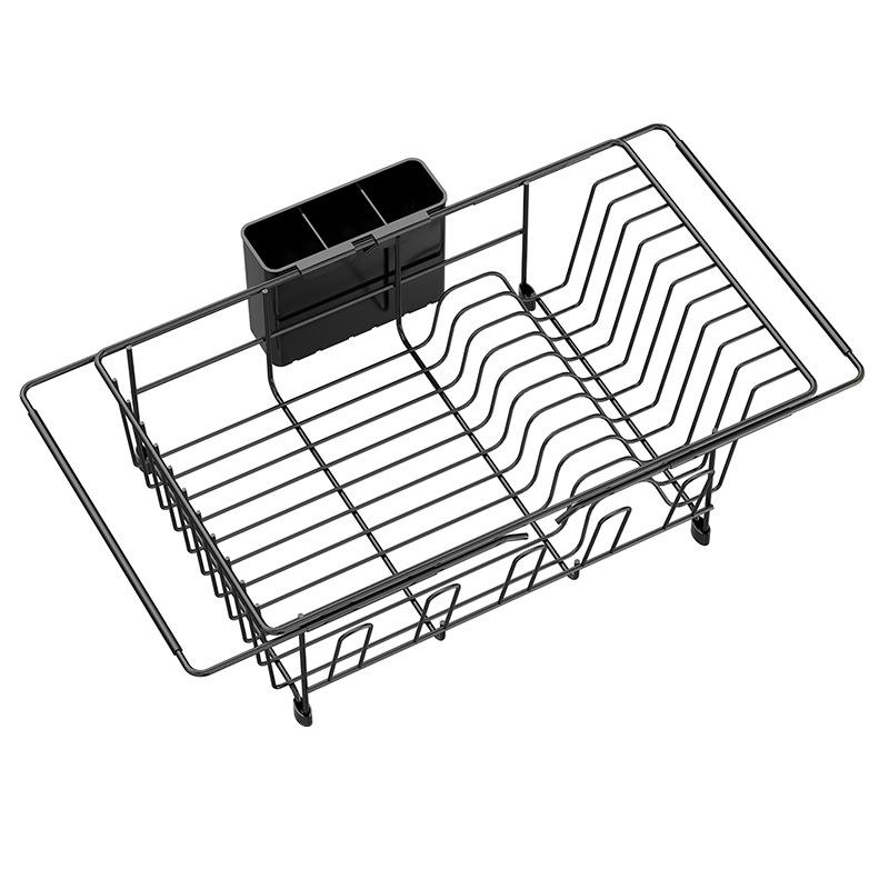 Minimalist Black Extendable Sink Dish Rack With Cup Storage Quick Dry Kitchen Countertop Draining Rack L Size Square Shape