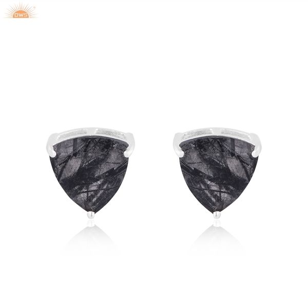 Minimalist Black Rutile Genuine Gemstone Push Back Stud Women Earrings Unique Handmade Every Day Earrings