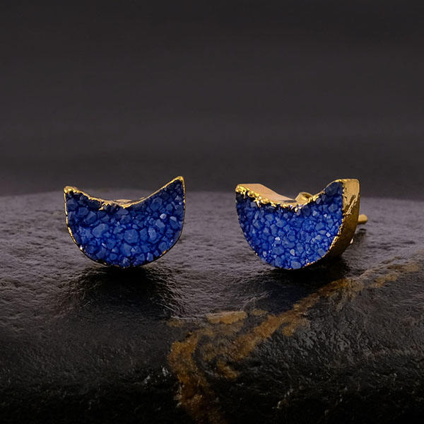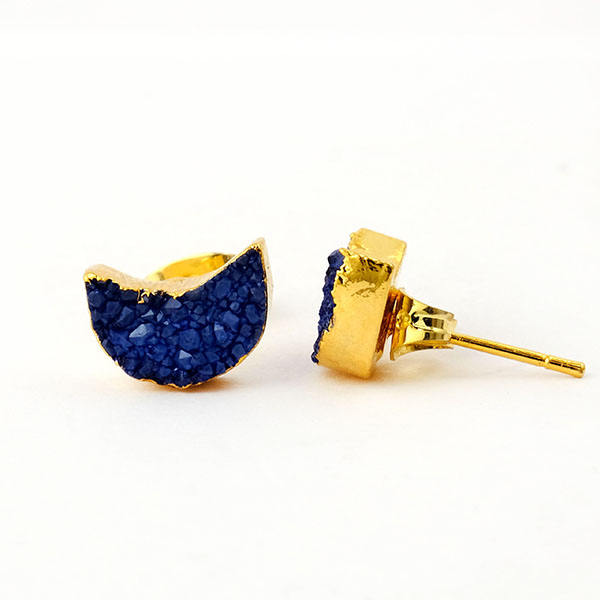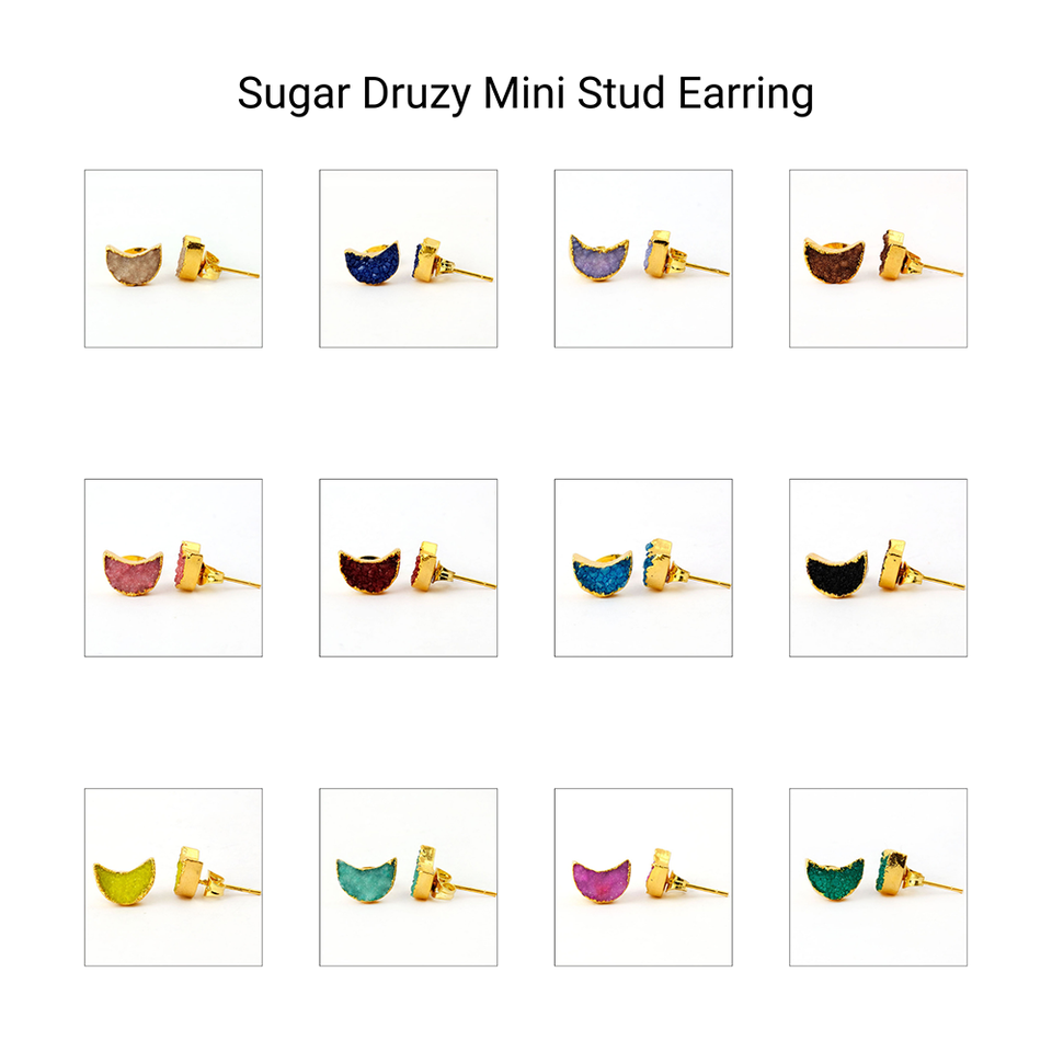 Minimalist Boho Gold Plated Stud Earrings Natural Sugar Druzy Gemstone Moon Style Wholesale Supply Jewelry