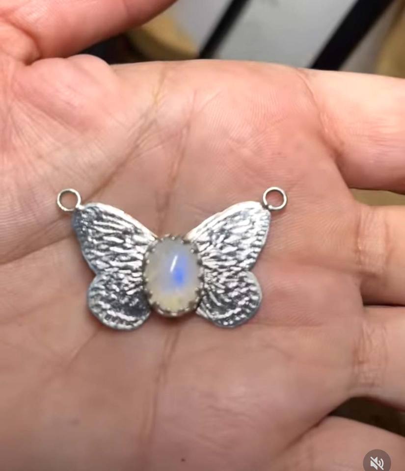 Minimalist Butterfly Connector Oval Shaped Rainbow Moonstone Gems Connector Brass Butterfly Prong Setting Charm Connector