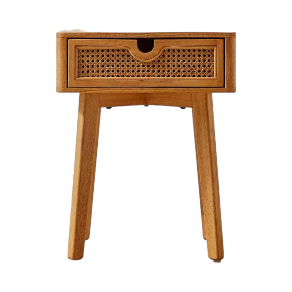 Modern Minimalist Solid Wood Bedside Nightstand with Rattan Drawer for Hotel Home Bedroom Living Room Supermarket Furniture