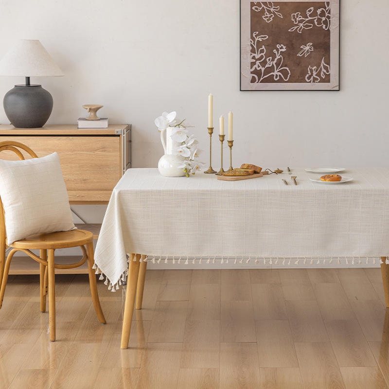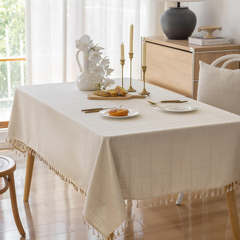 Minimalist Checkered Tassel Tablecloth Rectangular Oilproof Stain Resistant For Dining And Coffee Tables Home Use Polyester