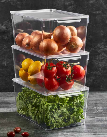 Minimalist Clear Refrigerator Storage Organizer Set-6L/4.75L/3.25L Stackable Bins Lids Multifunction Design for Kitchen Acrylic