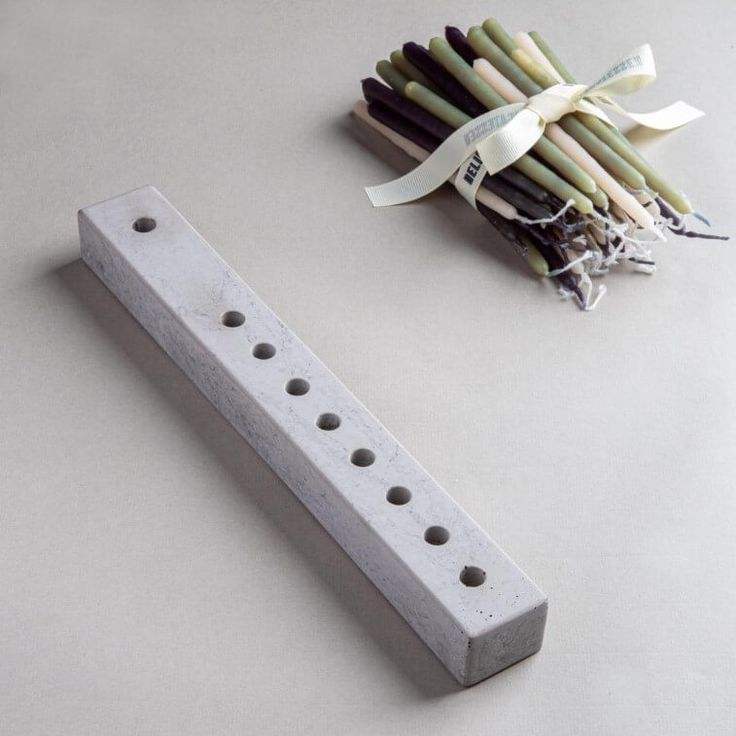 Minimalist Concrete Menorah Multi Candle Holder Modern Artistic Stone Stand Elegant Contemporary Jewish Festival Centerpiece
