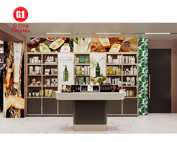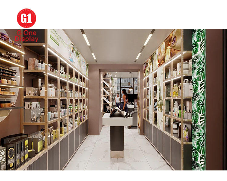 Minimalist Cosmetics Shop Display Shelf Custom Perfume Display Stand Makeup Store Display Counter for Shop Design