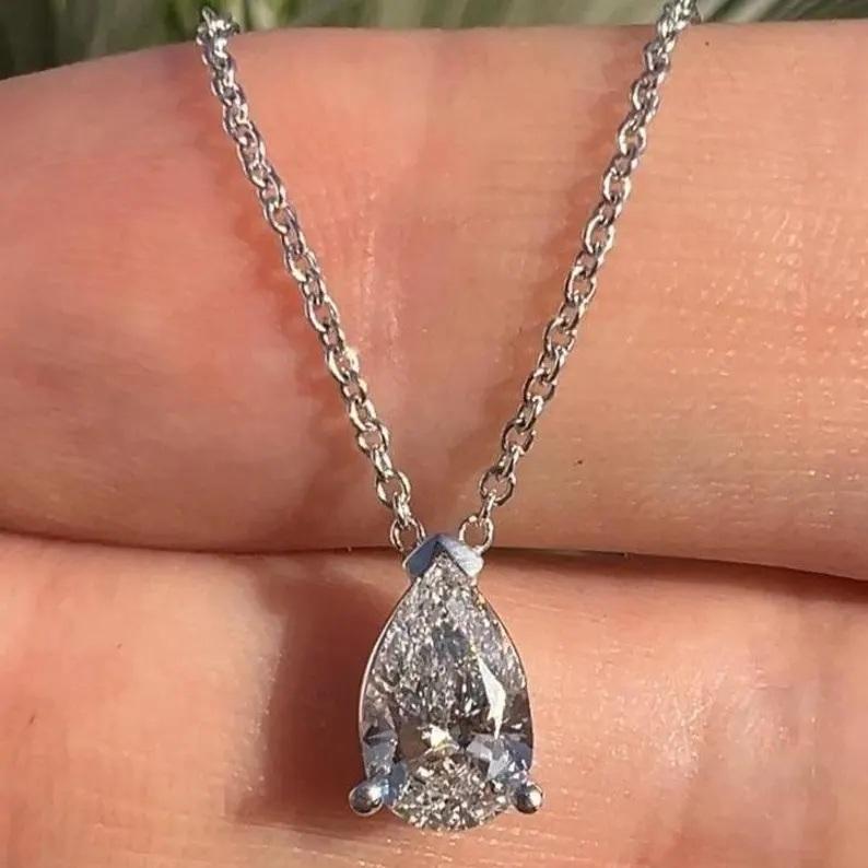 Minimalist Crown-shaped Pear Cut Lab Grown Diamond Necklace Floating Solitaire Pendant Solid Gold Everyday Sparkle Mod Jewelry