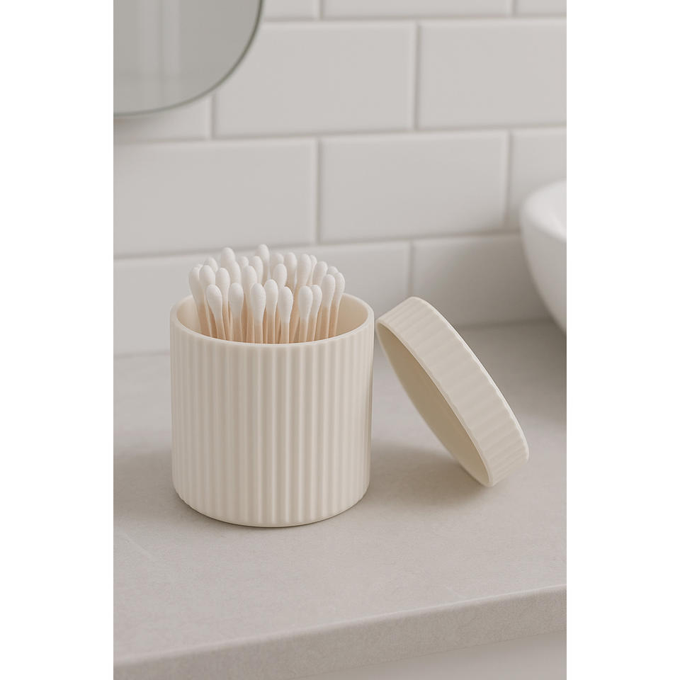 Minimalist Cylindrical Bathroom Organizer Set Plastic 3-Piece Hair Clip Cotton Swab Holder Easy Cleaning Freestanding