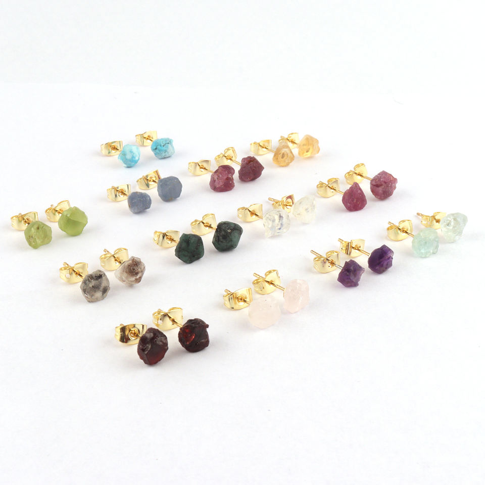 Minimalist Dainty Brass Gold-Plated Turquoise Ear Post Stud Earrings Trendy December Birthstone Jewelry Push Back Stud Orthodox