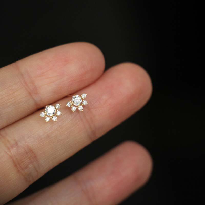 Minimalist Dainty Stud Earrings Solid 9k Gold with Garnet Trendy Crystal Jewelry for Weddings Parties Gifts