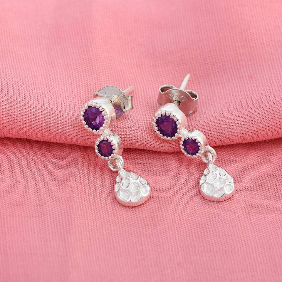 Minimalist Dangle Design Earrings S925 Sterling Silver Natural Amethyst Faceted Round Gemstone Earrings Fine Jewelry For Women