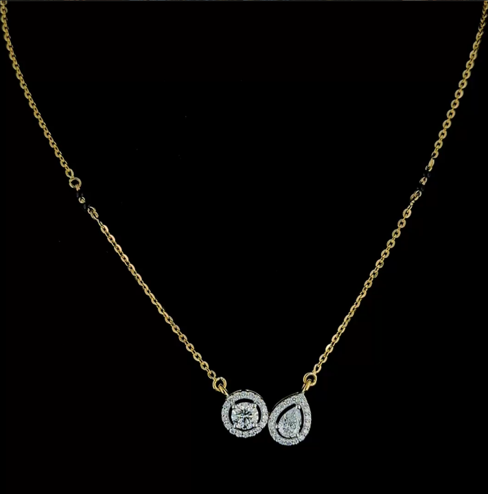 Minimalist Double Pendant Lab Grown Diamond Necklace in Gold Round and Pear Cut Halo Fine Jewelry