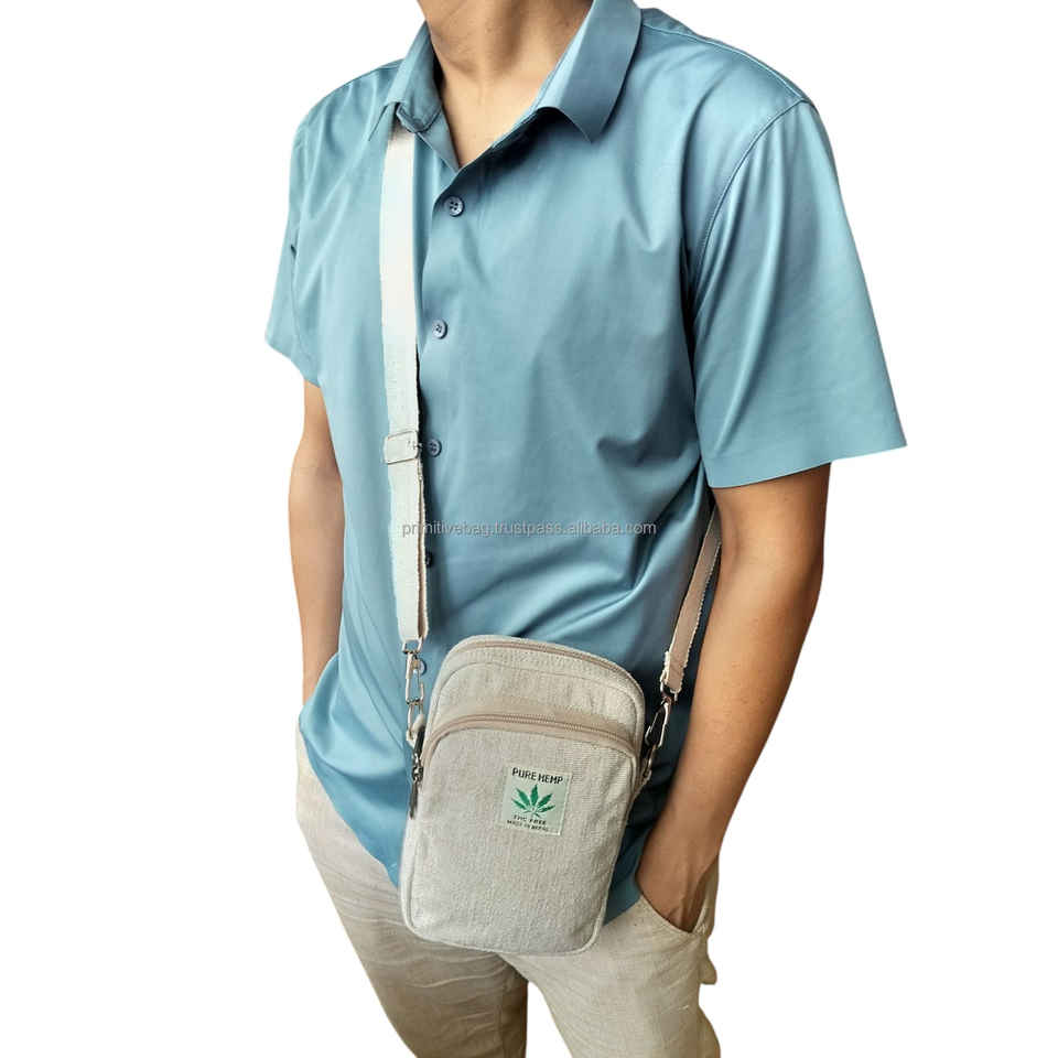 Minimalist Eco-friendly Cross-Body Bag Handmade Natural Hemp Fabric Simple Business Unisex Urban Travel Casual Messenger
