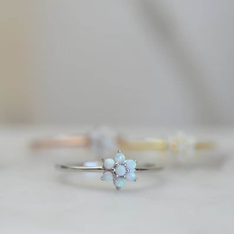 Minimalist Ethiopian Opal Flower Ring Solid 925 Sterling Silver 18K Gold Plating Band Women Girls Wedding Party Fine