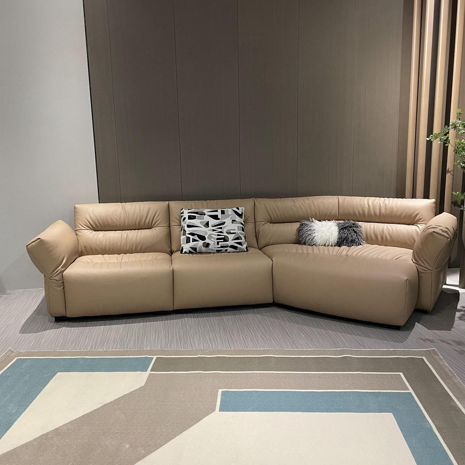 Minimalist Fabric Sofa Moon Curved Sofa Minimalist Living Room Cream Style Sofa