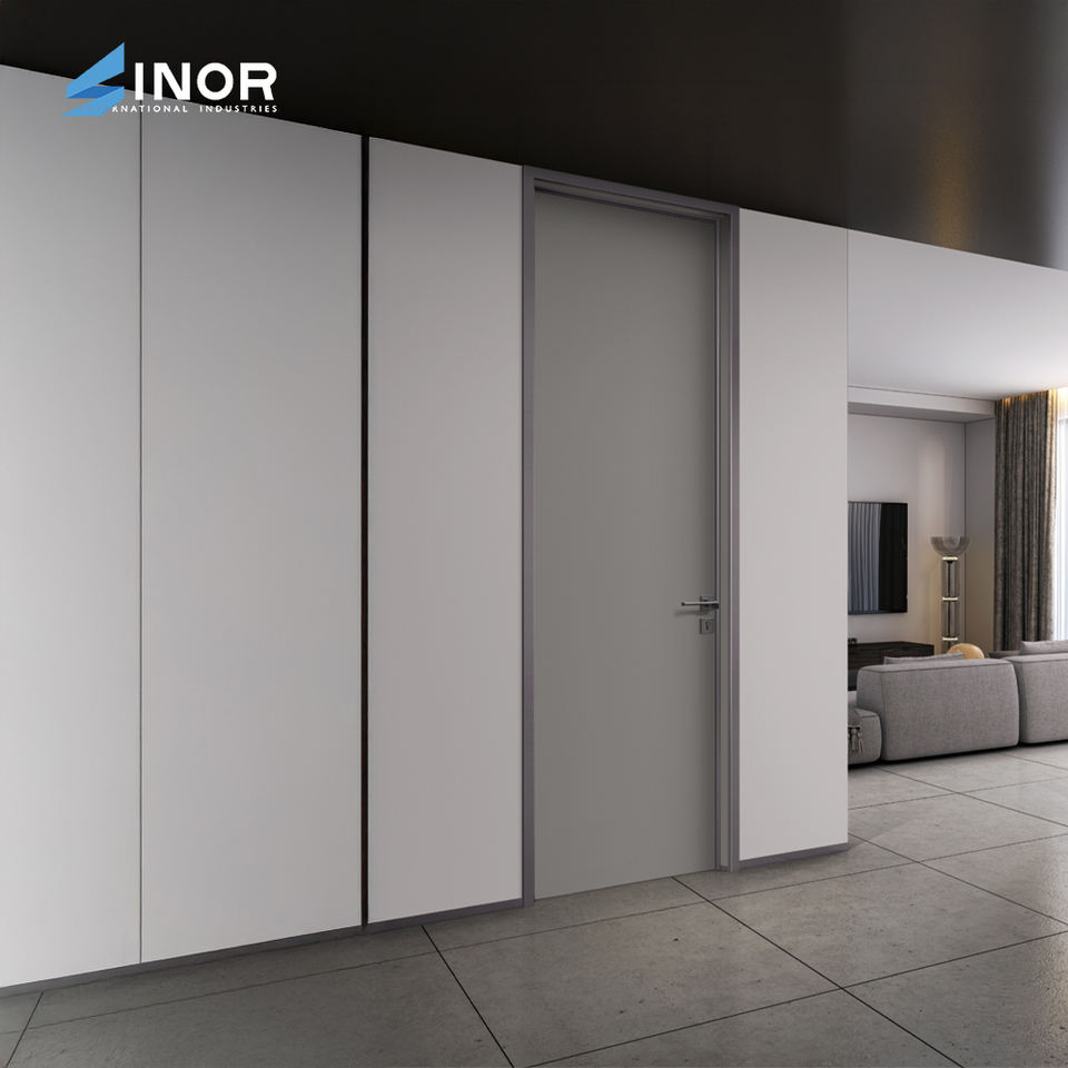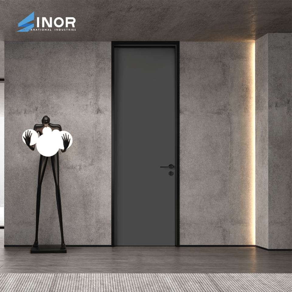 Minimalist Full Height Aluminum Wood Hybrid Interior Door Finished Surface for Bathroom Bedroom with Hidden Installation System