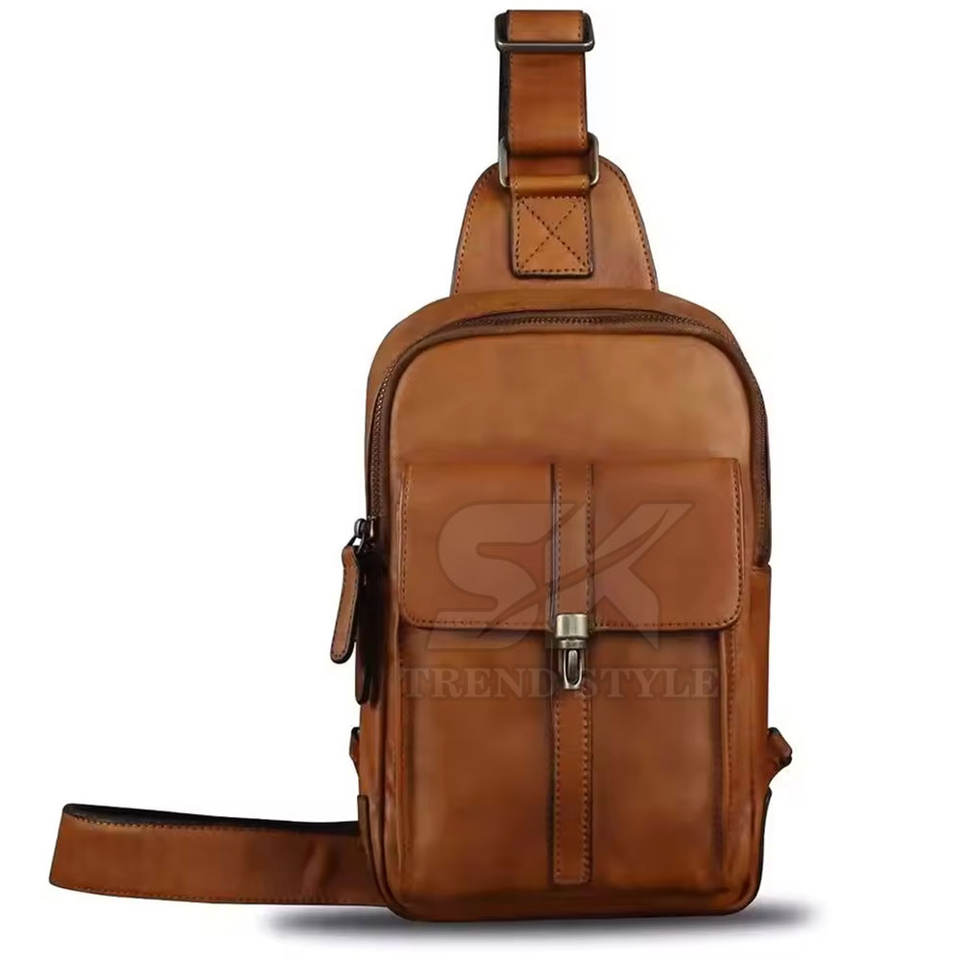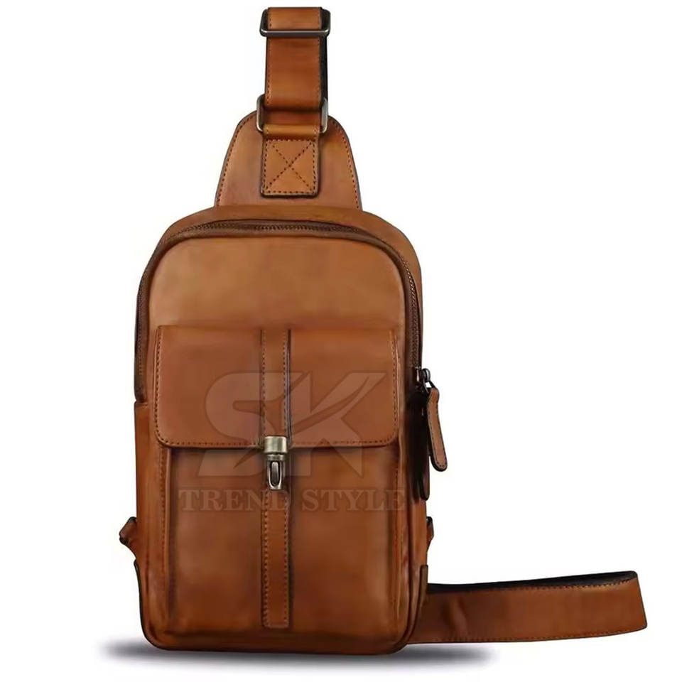 Minimalist Genuine Leather Plain Solid Color Sling Bag Durable Crossbody Shoulder and Chest Bag For Men And Women