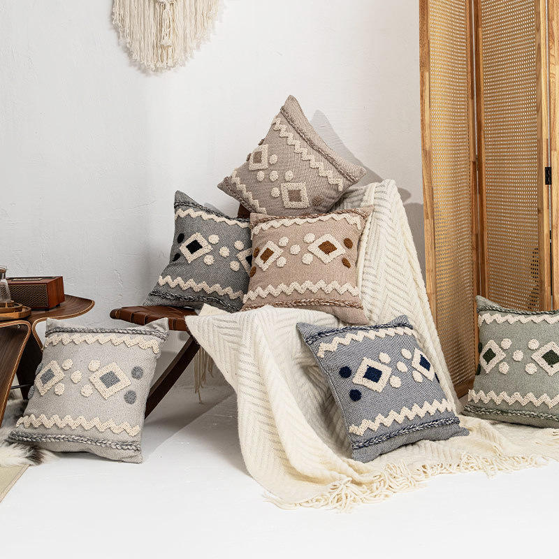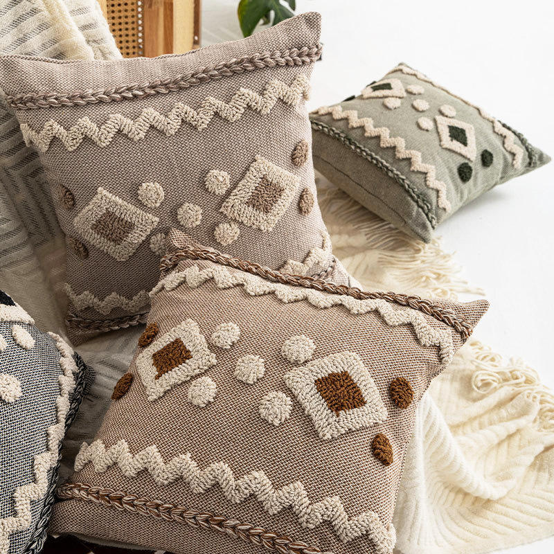 Minimalist Geometric Embroidered Pillowcase Cotton Linen Square Cushion Cover for Home Decor Living Room Sofa Bed Use