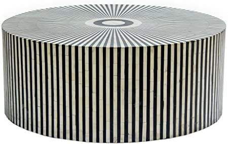 Minimalist Handicraft Wooden Coffee Table Bone Inlay Latest Design Round Shape Handmade Table Decorative Bone Inlay Furniture