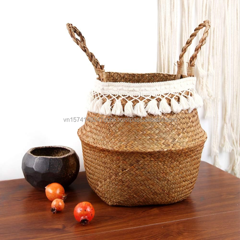 Minimalist Handmade Seagrass Belly Basket Boho Foldable Storage With Handles For Bathroom Organizer Sustainable Wicker Design