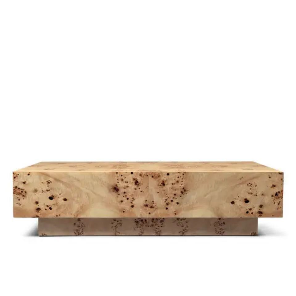 Minimalist Indoor Home Tea Table square Poplar Burl Wood Center Table for the Room