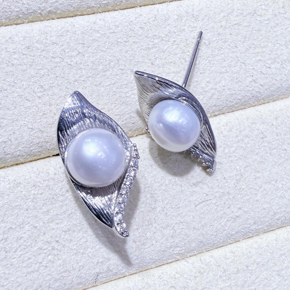 Minimalist Ins Style 14K Gold Freshwater Pearl Earrings Horseshoe Lotus Zircon and Small Fresh Willow Leaf Fine Stud Design