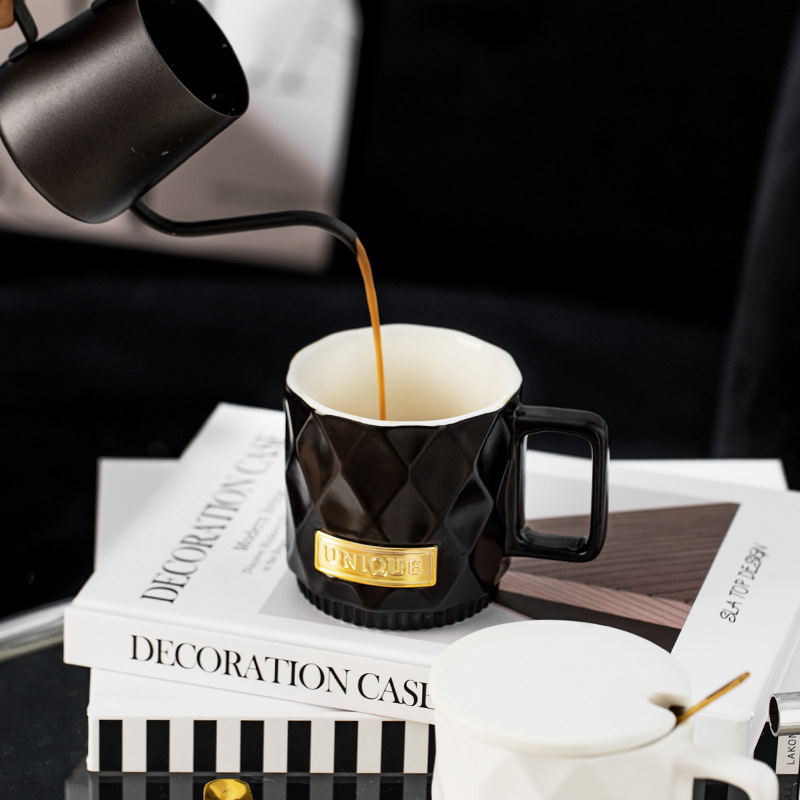 Minimalist Instagram Style Cartoon Ceramic Mug with Lid Spoon 360ml Dishwasher/Microwave Safe Party Use Home Office Coffee/Water