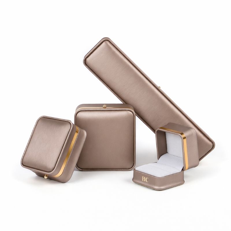 Minimalist Jewelry Set Box Luxury Flip Top PU Leather Jewelry Gift Box Velvet Insert Tray Embossing Custom Logo Factory Supply