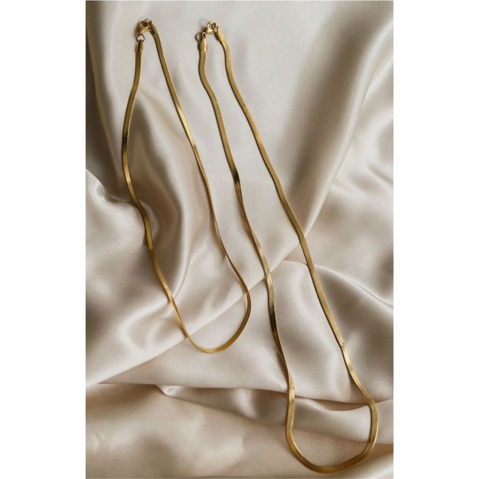 Minimalist Liquid Copper Herringbone Necklace 3mm 5mm Stainless Steel Flat Blade Snake Chain Choker Waterproof Jewelry Chain