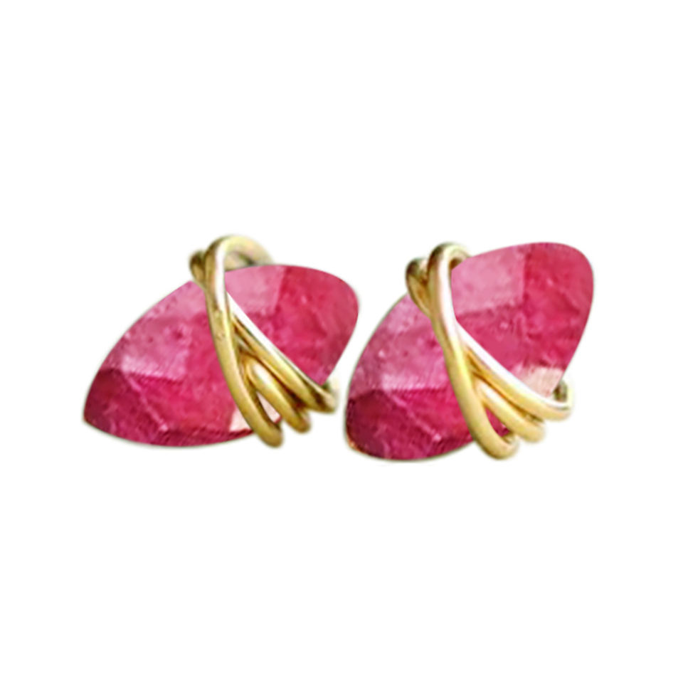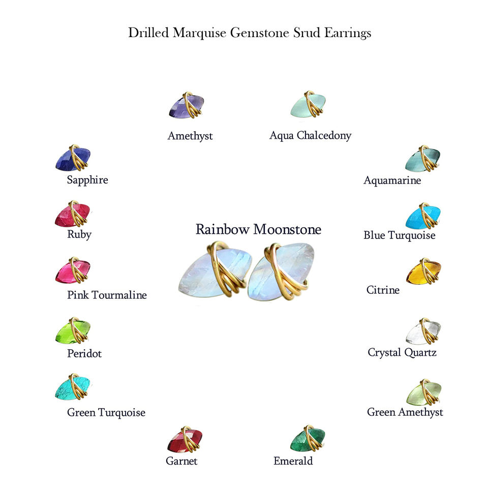 Minimalist Marquise Wire Drill Sterling Silver Gold Vermeil Stud Earrings Faceted Ruby Gemstone for Gift