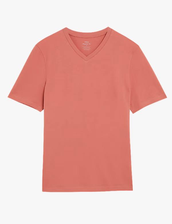 Minimalist Men's V-Neck T-Shirt 100% Organic Cotton Breathable Canvas Fabric Screen Printing Neat Finish Casual Style