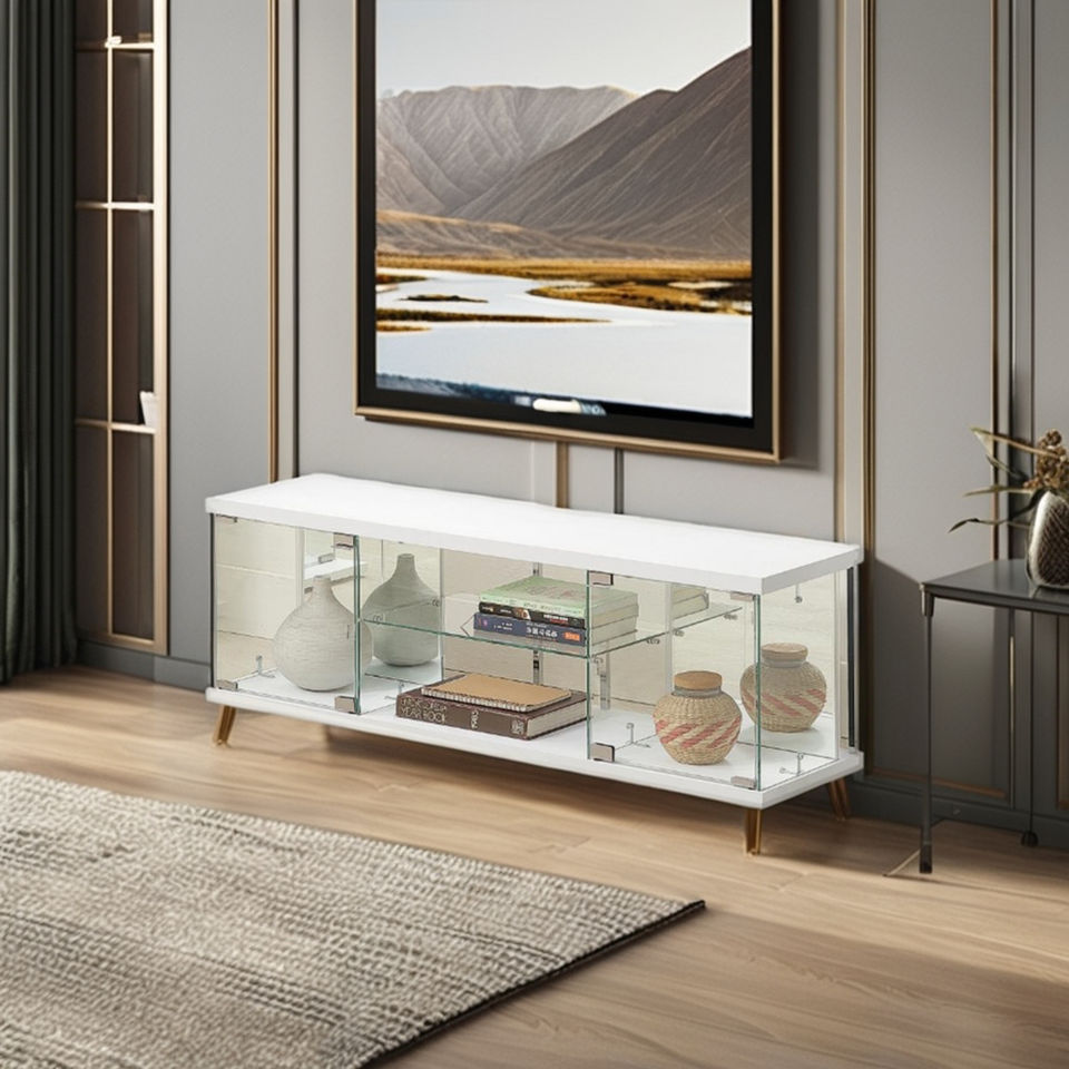 Minimalist Modern Design Tempered Glass TV Cabinet for Living Room Home Office Apartment Dining Room Bedroom Hotel